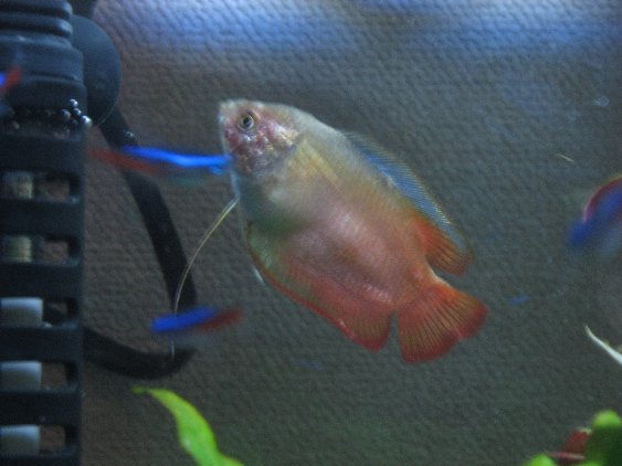 今回から、気の向いた時に、水槽の仲間を、少しずつ紹介します この魚、グラミーくん(♂) ペアで、仲良く泳いでます